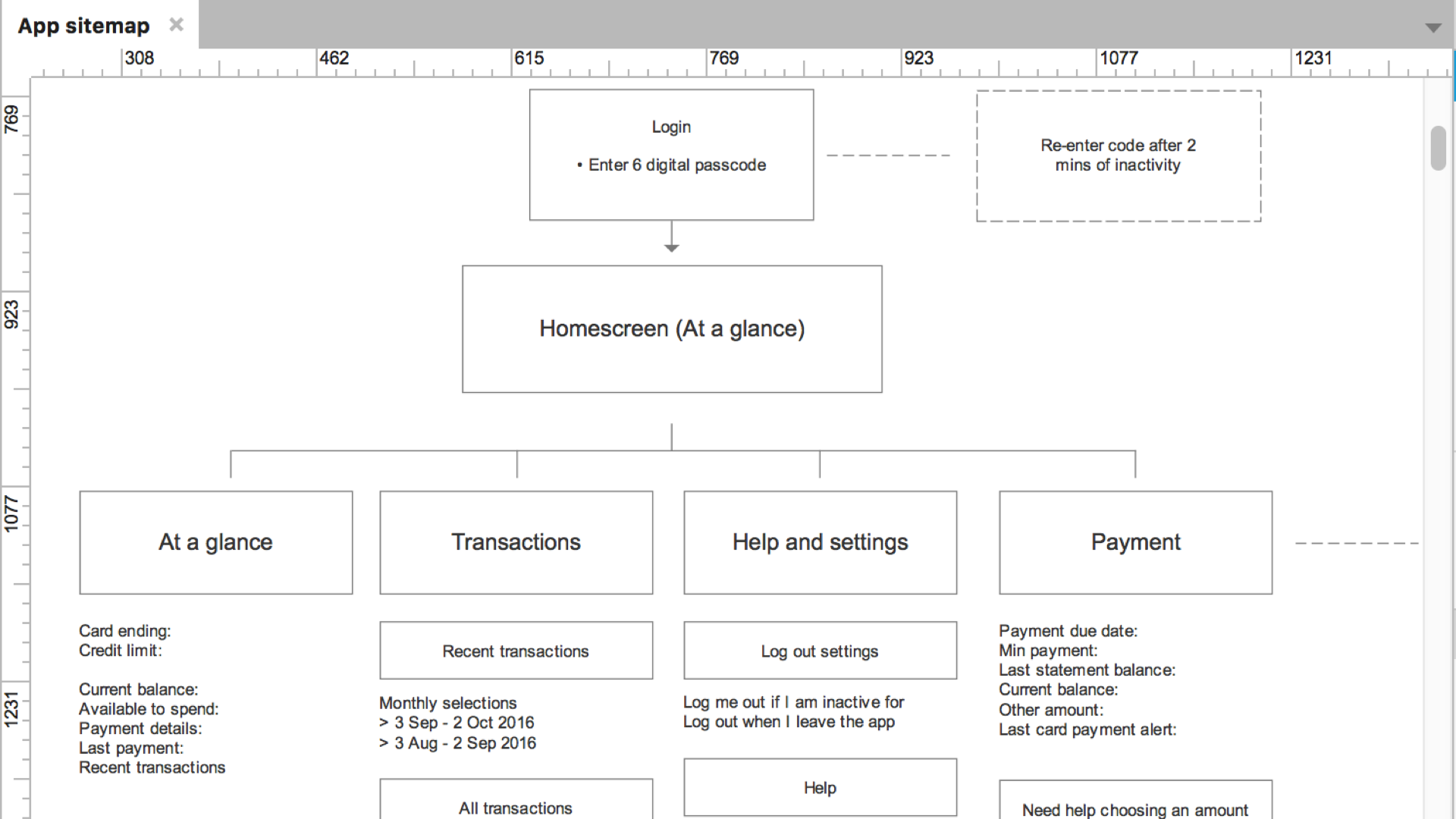 - A diagram of the existing IA of the application, suitable to be expanded to meet future features and requirements.